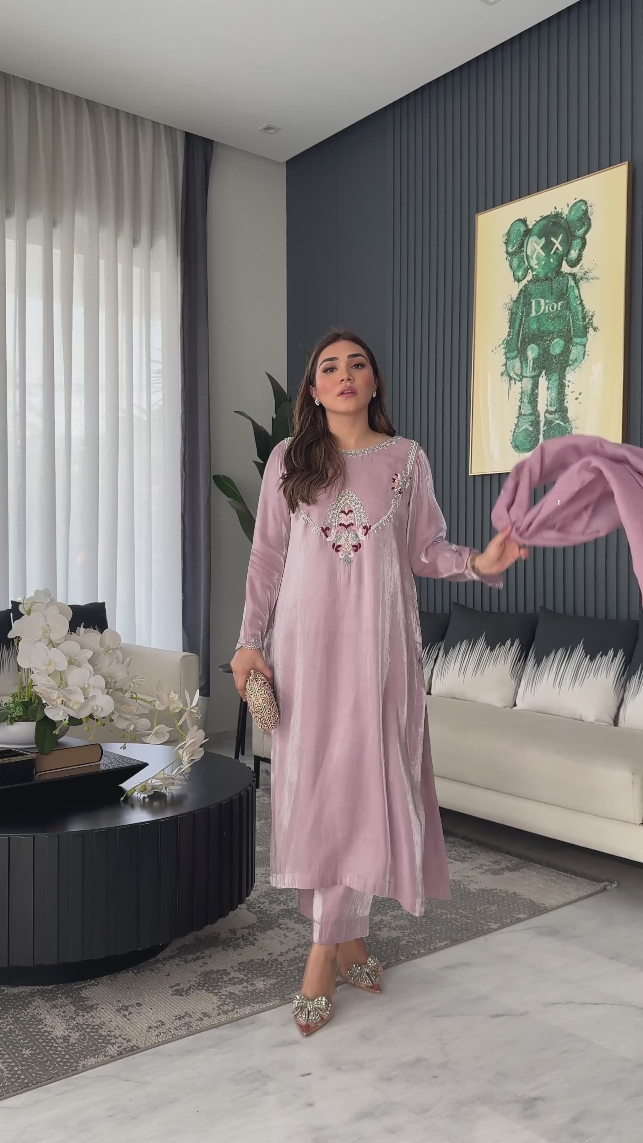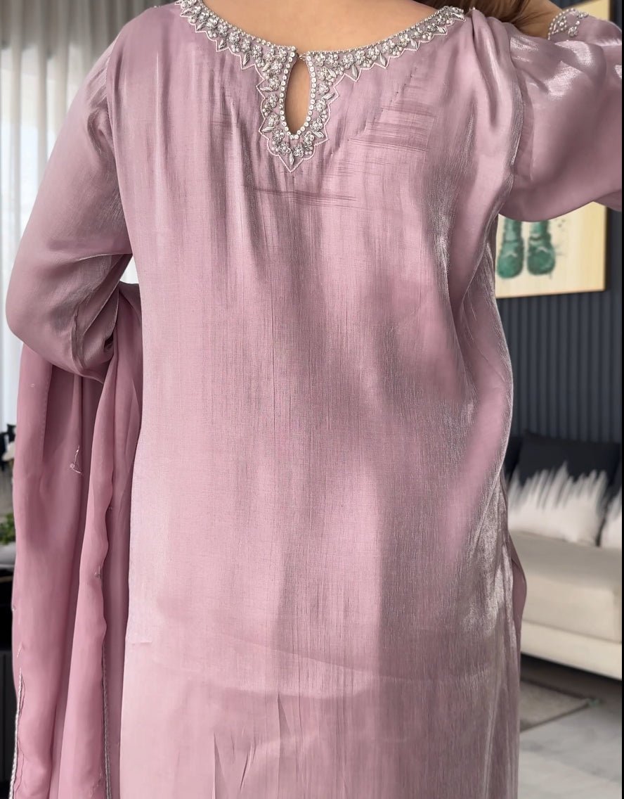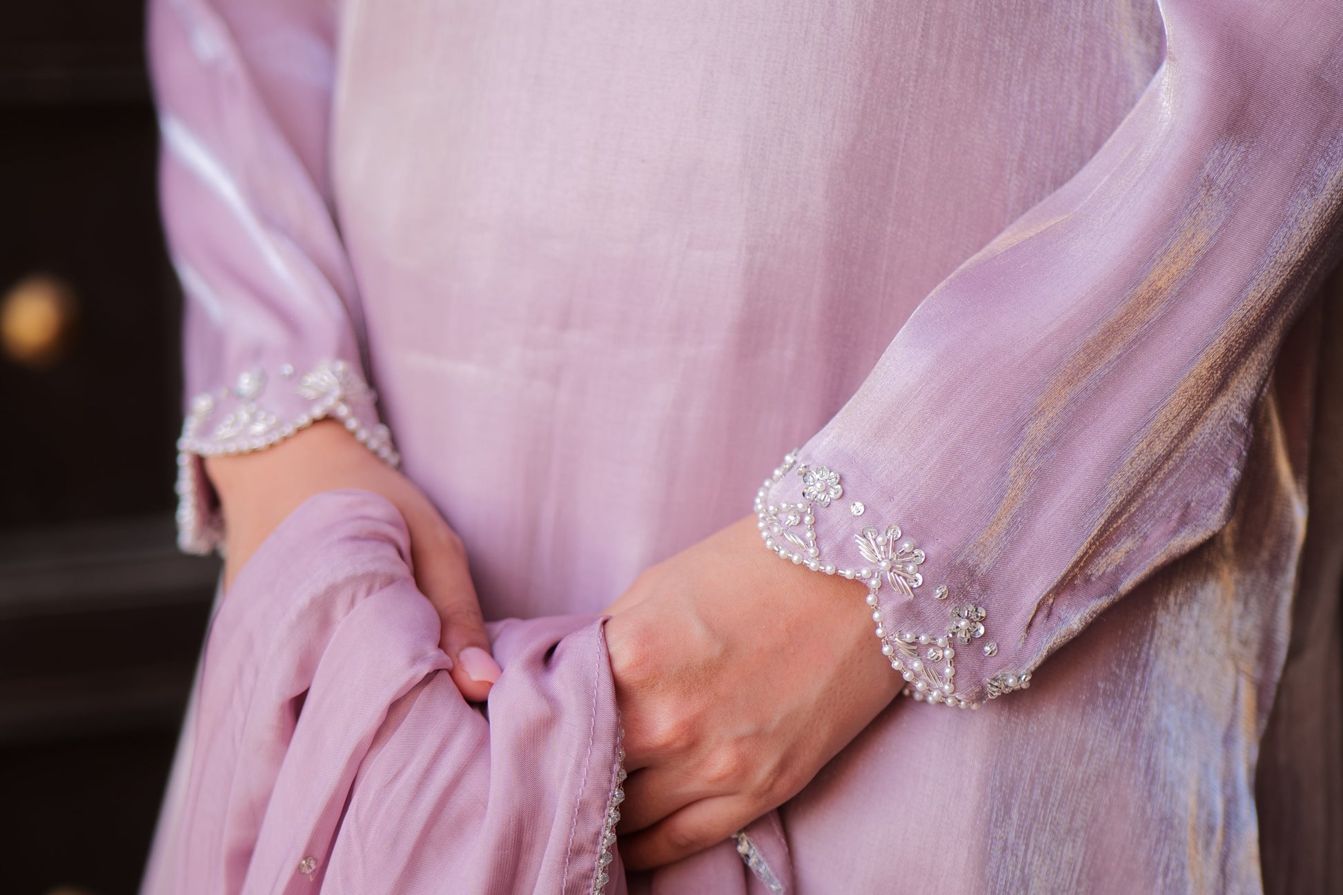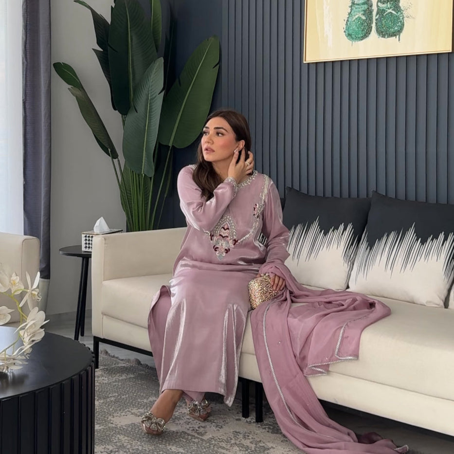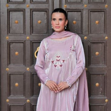 Some colours speak of purity and fresh beginnings. Introducing L25 Lilac đ, a shade that embodies innocence and spirituality, exuding softness and elegance. This exquisite piece is embellished with fine thread work, pearls, and intricate Kora â¨đĒŠ, crafted in premium Lama silk with a delicate sheen and velvety touch.